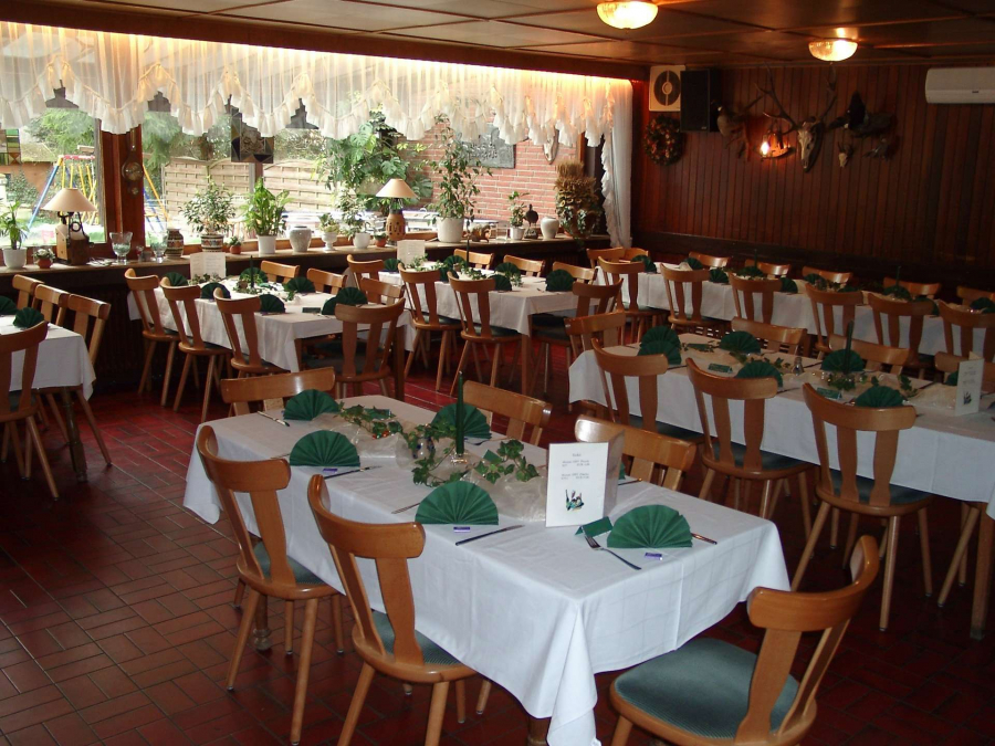Die Gaststätte im Erdgeschoss gliedert sich in den Restaurantbereich mit Theke und einen Veranstaltungsraum auf, an den sich ein Wintergarten anschließt, so dass die Möglichkeit besteht, gleichzeitig mehrere geschlossene Gesellschaften in separaten Räumen – auch parallel zum laufenden Restaurantbetrieb zu bewirten. Die Toilettenanlagen befinden sich auf gleicher Ebene wie die Gasträume.