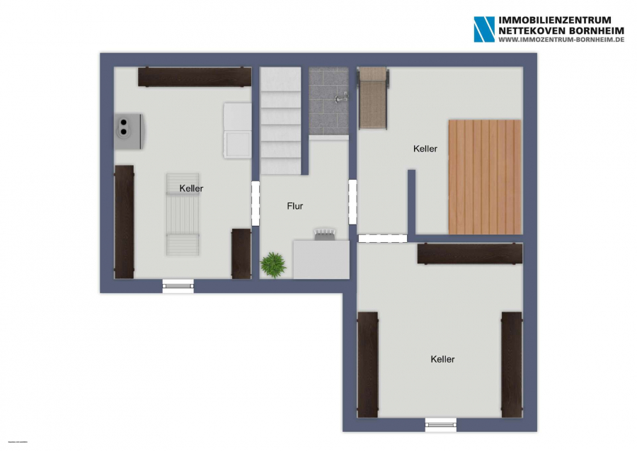 Im Kellergeschoss wird das Raumangebot des Haupthauses durch den Heizungskeller, einen Vorratsraum, den Saunabereich und eine ebenerdige Dusche abgerundet.