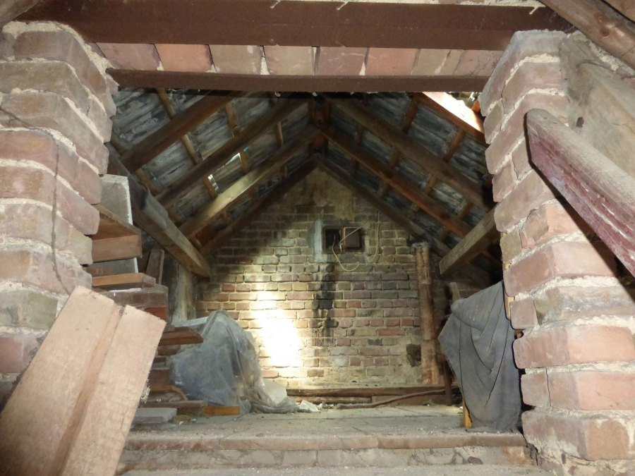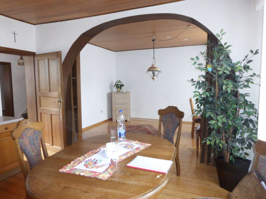 - Bodenbeläge: Holzdielen (Küche und Wohnzimmer EG), Laminat (in den Schlafzimmern), Mosaikparkett (im Dachgeschoss)