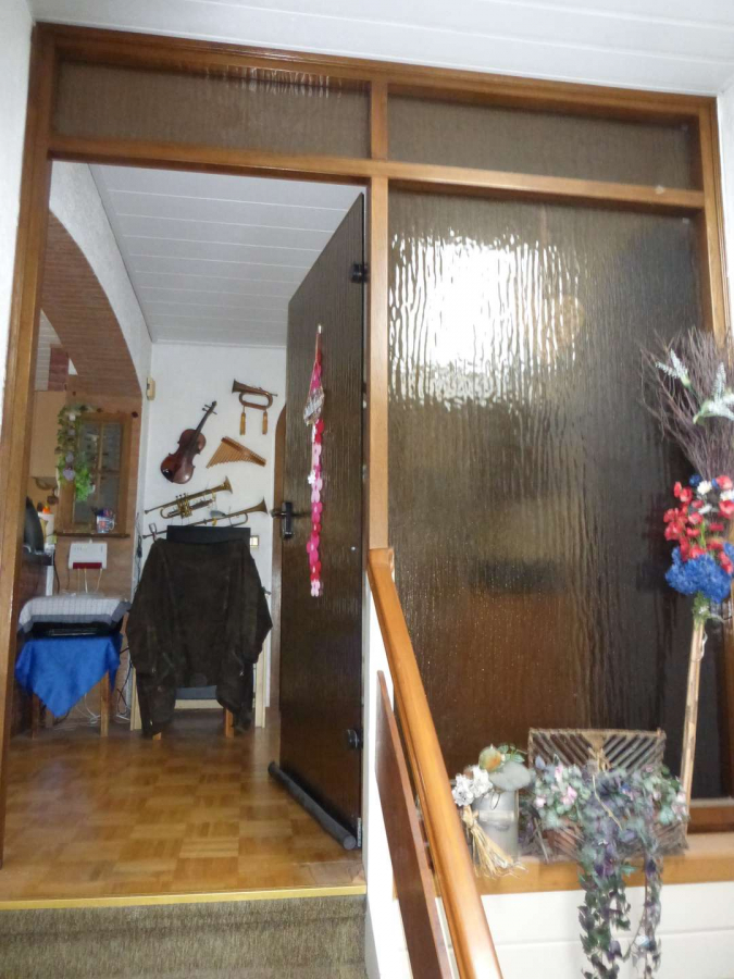 Vom Hof aus treten Sie in die Diele des Erdgeschosses ein, von der aus Sie ein Schlafzimmer, die Wohnküche mit offener Verbindung zum Wohnzimmer sowie das Tageslichtbad erreichen.